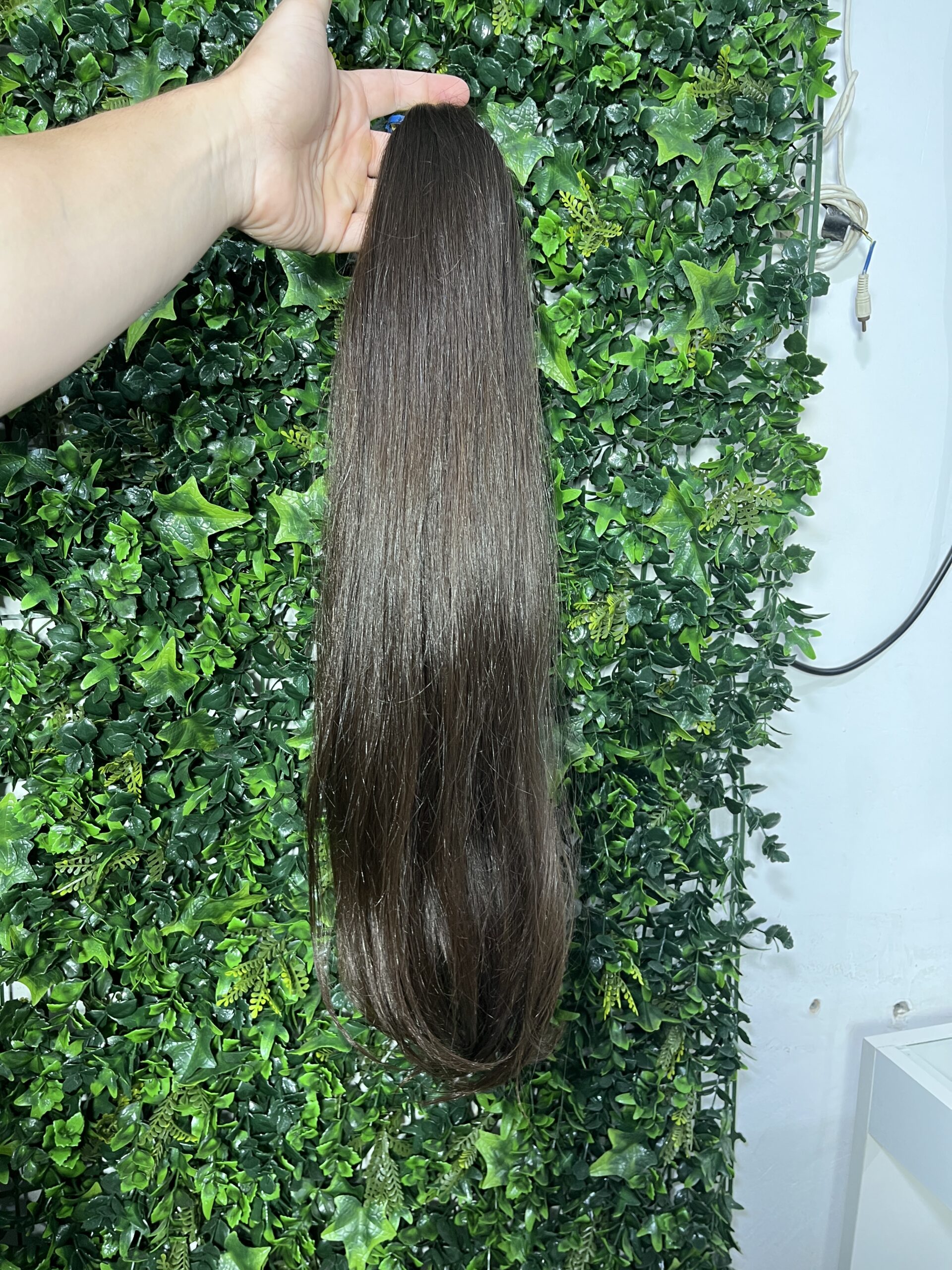 Cabelo gaúcho, na tonalidade Castanho claro, com Fio Fino de 67 centímetros e 184 gramas