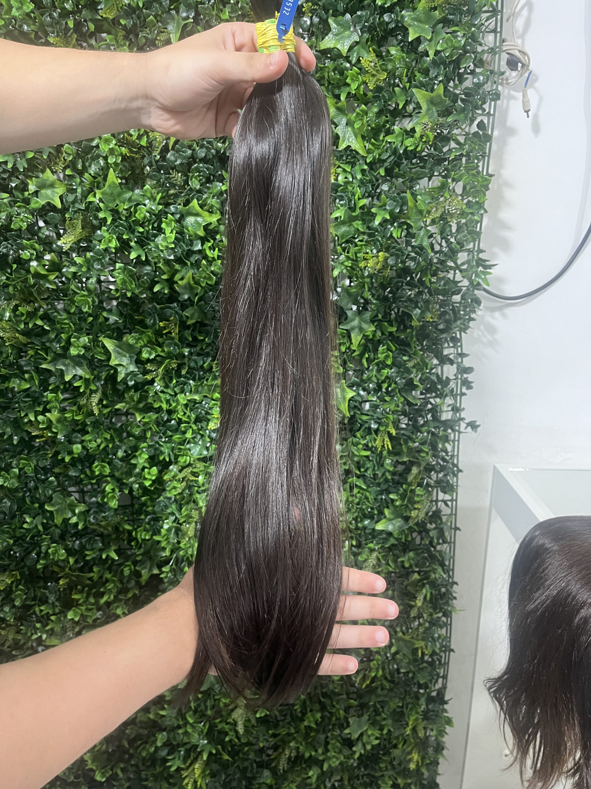 Cabelo brasileiro, na tonalidade Castanho médio, com Fio Fino de 62 centímetros e 180 gramas